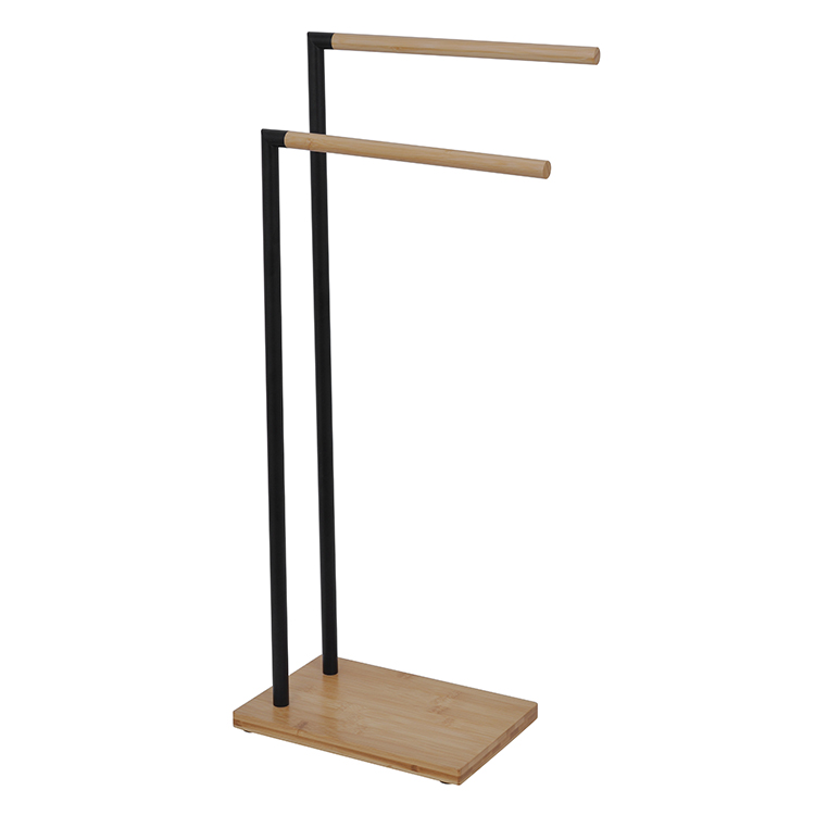 Aus der Sicht des Aussehensdesigns haben bodenorientierte Handtuchregale einen einzigartigen ästhetischen Ausdruck. Nehmen Sie den minimalistischen Stil als Beispiel. Die ordentlichen Linien skizzieren das Gerüst, und die Kombination von Metall mit Holz, Kunststoff und anderen Materialien erzeugt einen wunderbaren visuellen Funken. Die kalte und harte Natur des Metalls vermittelt ihm ein Gefühl der Stabilität, während die Wärme von Holz oder die Lebendigkeit von Plastik den Raum weich macht und es für verschiedene Badezimmerdekorationsstile wie modern, nordisch und japanisch geeignet ist. Zum Beispiel verfügt das auf dem Bild mit einem schwarzen Metallständer mit einer hellen Holzstange und einer Basis. Es strahlt einen einfachen, aber natürlichen Charme aus. Einmal im Badezimmer, wird es zu einer ruhigen, aber auffälligen Präsenz. Ohne komplizierte Dekorationen erfordert es den Raum mit einem Ordnung.