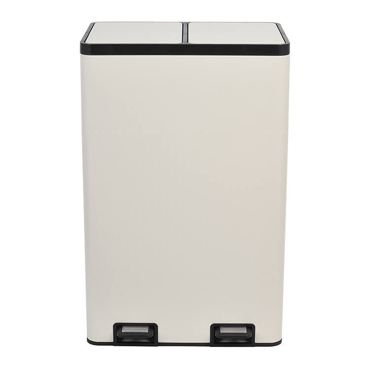| Pedalbehälter mit zwei Fächern | Edelstahl oder Kunststoff | Küche | 30L – 60L | Separate Bereiche für Recycling und Abfall |